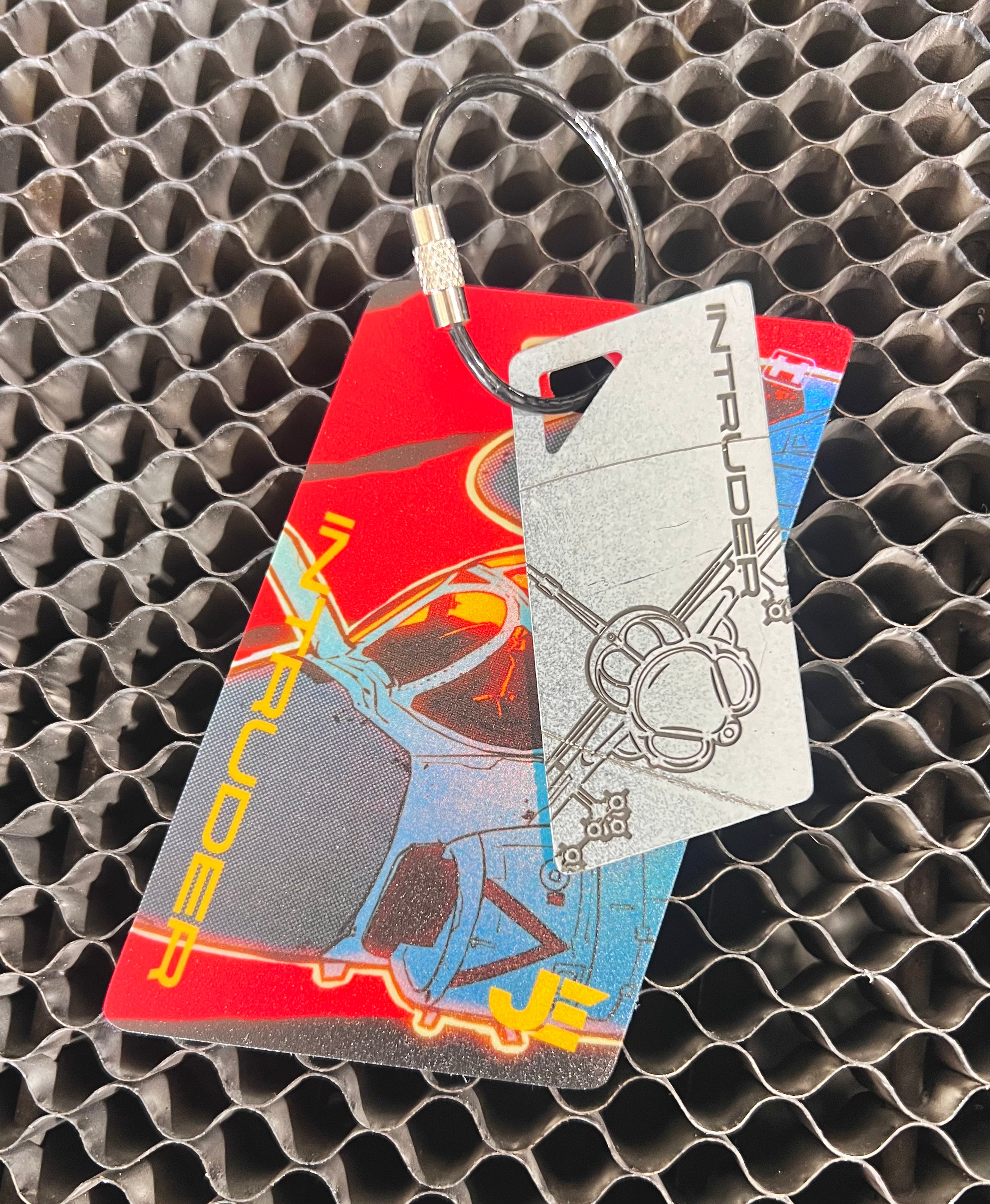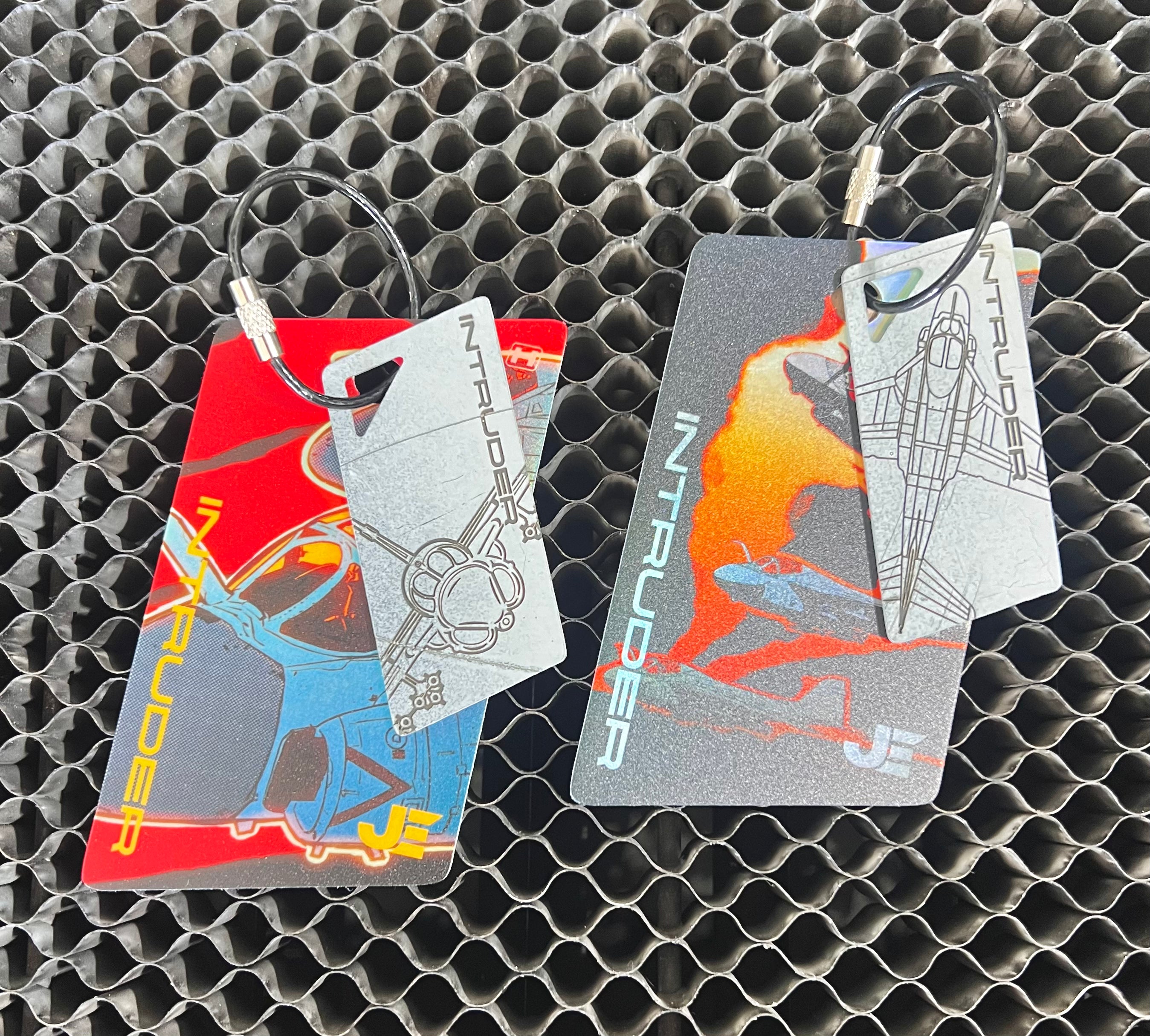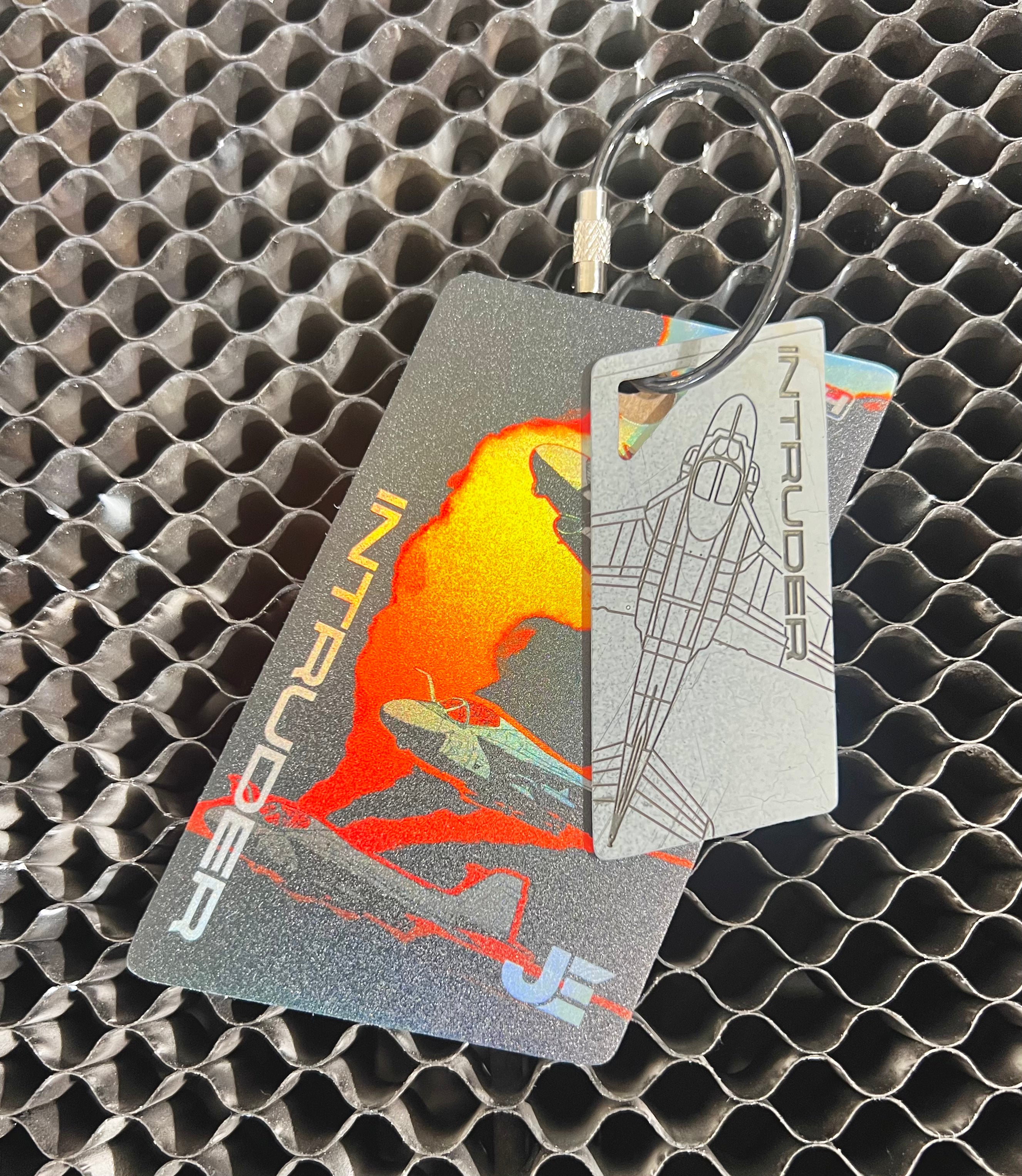 TRAPS are keychains/bag tags cut from aircraft skin and components that come with a laser etched or printed design. They are functional items and come with a full-color printed PVC luggage tag.