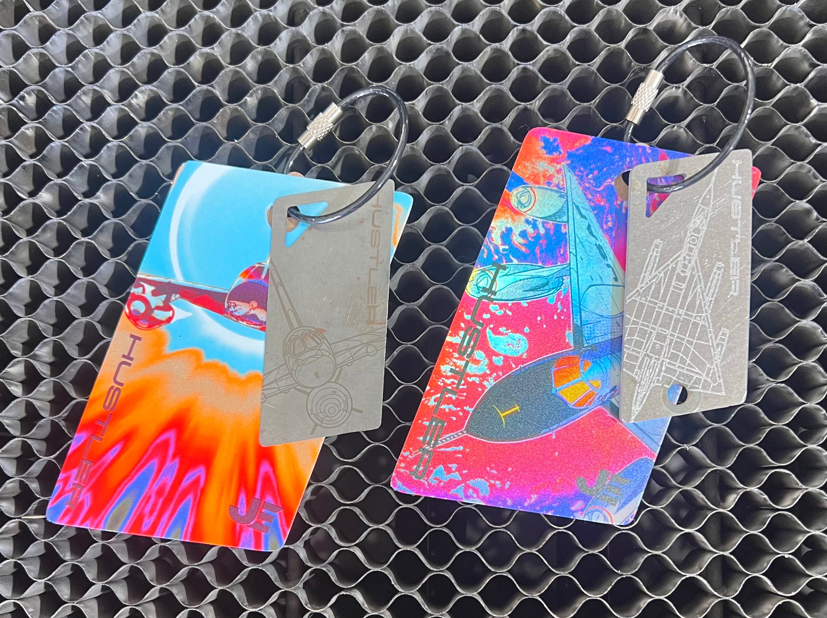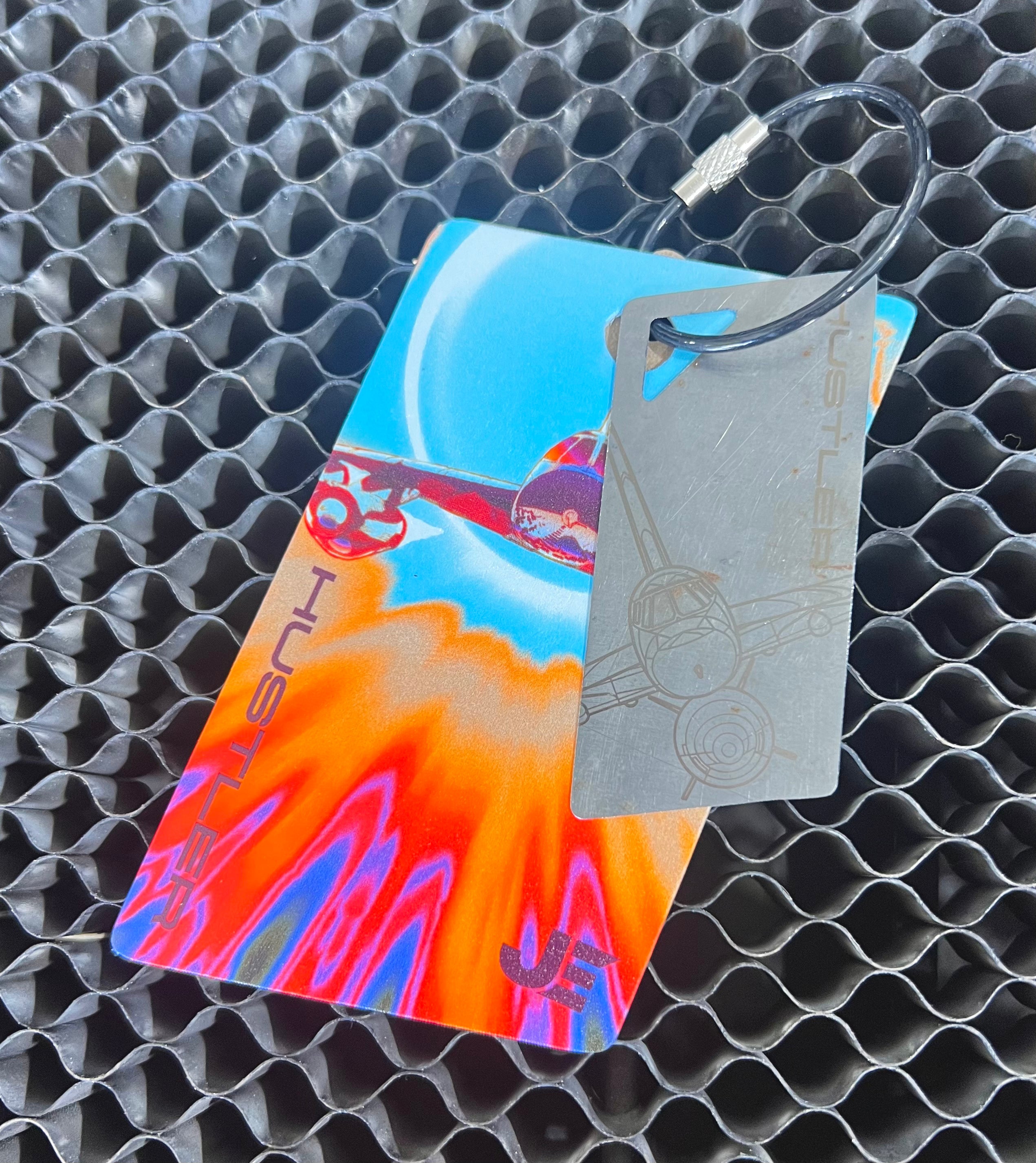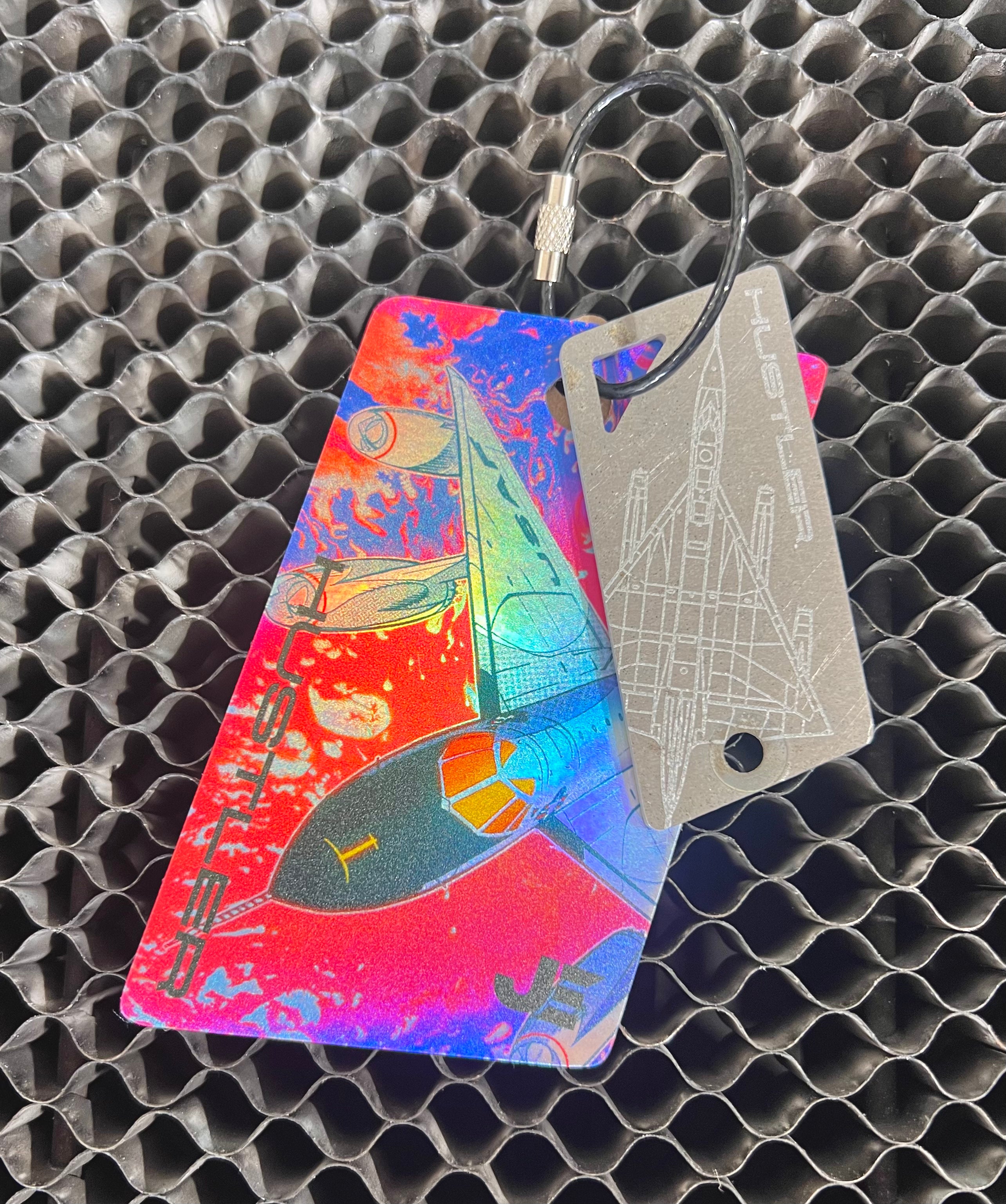 TRAPS are keychains/bag tags cut from aircraft skin and components that come with a laser etched or printed design. They are intended to be fun-functional items and come with a full-color printed PVC luggage tag.